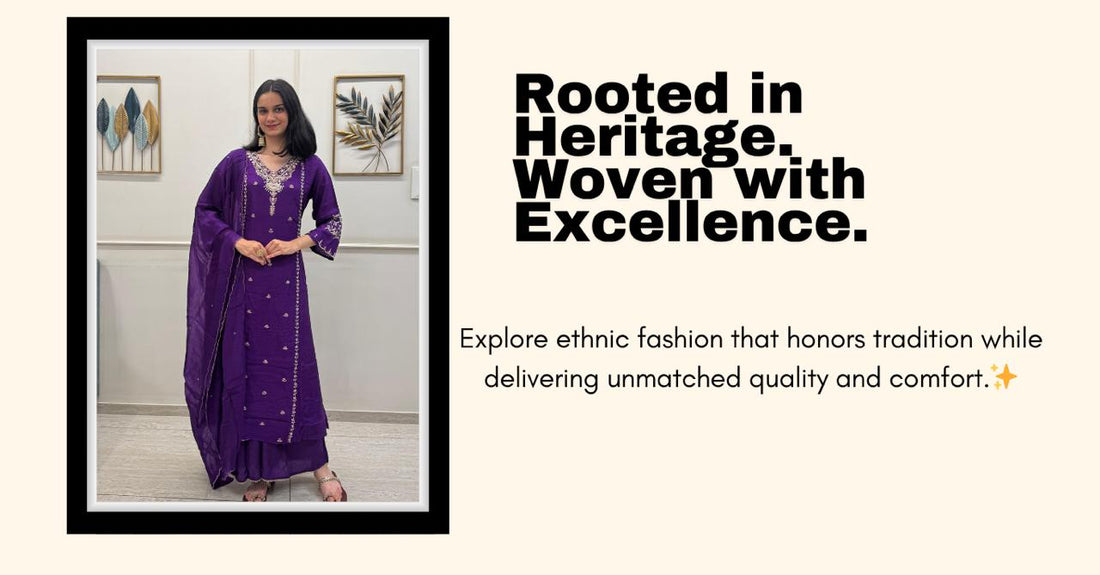 Chinon Silk Indo-Western Set With Intricate Handwork On The Neckline