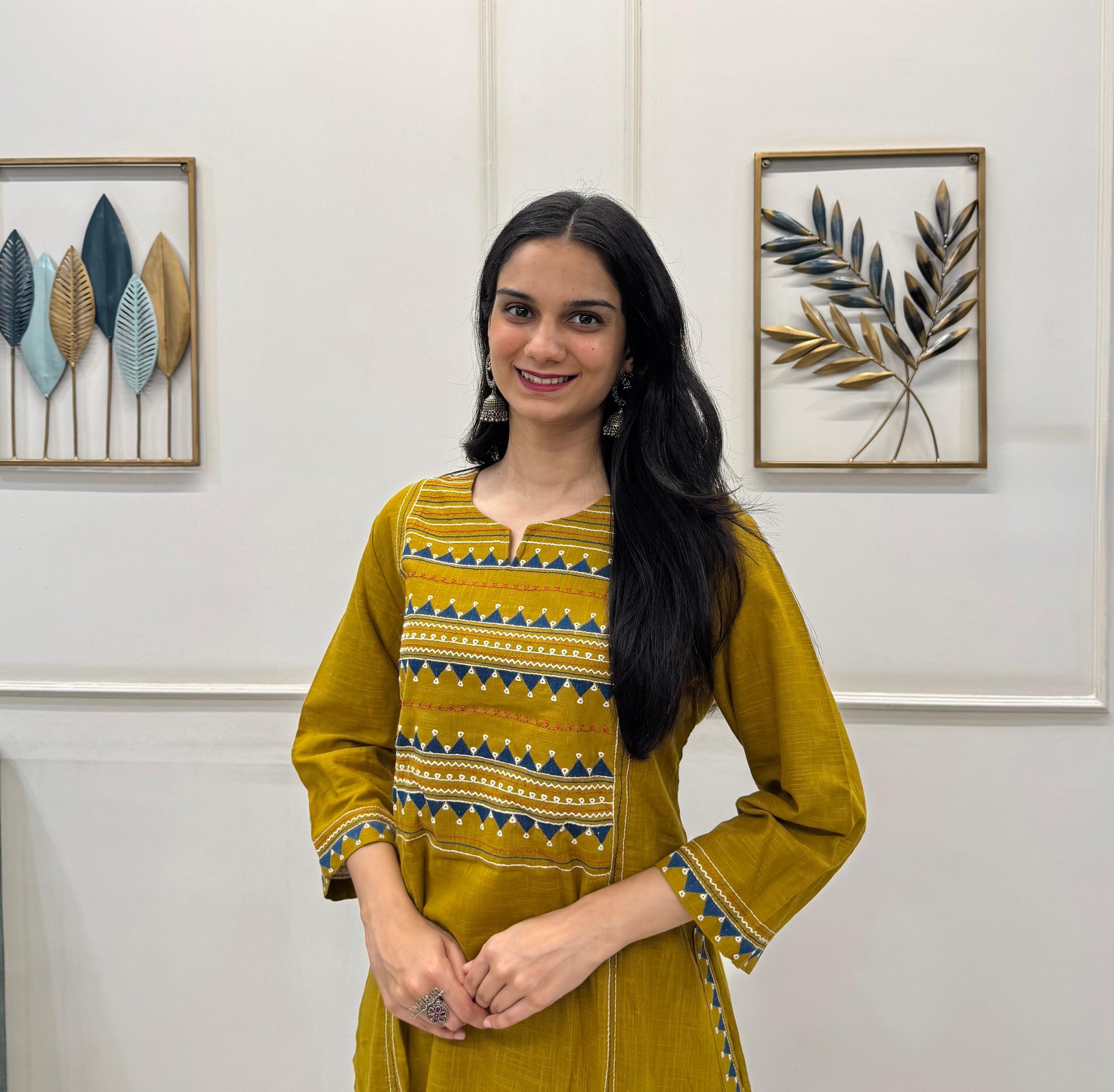 Bright, breezy, and beautifully detailed — this Mustard Cotton Kurta Pant Set is a vibrant take on everyday elegance. Made from soft, breathable pure cotton, the set features delicate multicolour embroidery that adds a pop of artistry to its rich mustard hue.